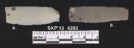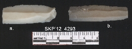 | Description / विवरण | Broken chert blade, rectangular in structure. The ridges can be clearly seen and the sides are retouched. Trapezium in cross section. |