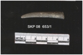 | Description / विवरण | Bone object, it is black in color. It is long and elongated. It is pointed at one end. It could be a bone point. |