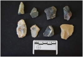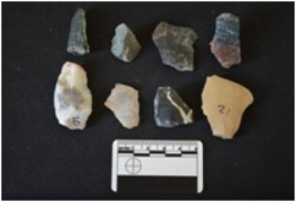| Description / विवरण | Fragment of chert blade has a mid ridge on dorsal side, striking platform, bulb of percussion on ventral side, broken along at distal end and triangular cross-section. |