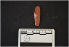 | Description / विवरण | Cornelian blade has a mid ridge on dorsal side, striking platform, use-wear marks on cutting edges and triangular cross-section. |