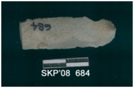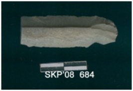 | Description / विवरण | This is a chert blade, with a bulb of percussion at the ventral side end. The other end is broader, flaked ridges on the dorsal side. On the dorsal side there a few striation marks like marks. Sharp lateral margins with use ware marks. Trapezium cross section. |