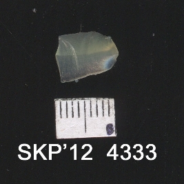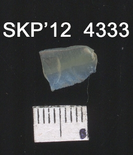 | Description / विवरण | Broken chalcedony blade. The sides are sharp. It is triangular in cross section. The bulb of percussion can be seen on the ventral surface. |