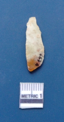 | Description / विवरण | It is a blade fragment with two sharp parallel sides and lateral margin with the working edges. The bulb of percussion is present ventral side with ripple on it due to flaking. It has flake scars on the surface. It has rectangular. It has soil impurities on the surface. |