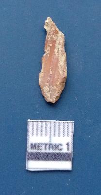 | Description / विवरण | It is a blade fragment with two sharp parallel sides and lateral margin with the working edges. The bulb of percussion is present ventral side with ripple on it due to flaking. It has flake scars on the surface. It is having single sides sharp edges. Ripple are clearly seen. |
