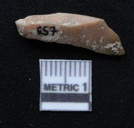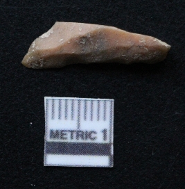 | Description / विवरण | It is a blade fragment with two sharp parallel sides and lateral margin with the working edges. The bulb of percussion is present ventral side with ripple on it due to flaking. It has flake scars on the surface. |