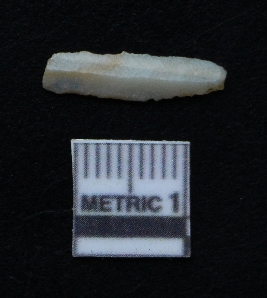 | Description / विवरण | It is a blade fragment with two sharp parallel sides and lateral margin with the working edges. The bulb of percussion is present ventral side with ripple on it due to flaking. It has flake scars on the surface. |