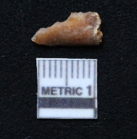| Description / विवरण | It is a blade fragment with two sharp parallel sides and lateral margin with the working edges. The bulb of percussion is present ventral side with ripple on it due to flaking. It has flake scars on the surface. |