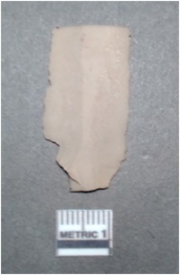 | Description / विवरण | It is a chert blade, both the sides are sharp and retouched. The ridges can be seen clearly on the dorsal surface, the vendral surface is plain, it is trapezium in section. |