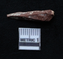 | Description / विवरण | It is a blade fragment with two sharp parallel sides and lateral margin with the working edges. The bulb of percussion is present ventral side with ripple on it due to flaking. It has flake scars on the surface. |