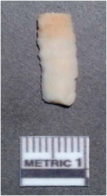 | Description / विवरण | It is a chert blade, both the sides are sharp and retouched. The ridges can be seen clearly on the dorsal surface, the vendral surface is plain, it is traingular in shape. |