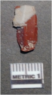 | Description / विवरण | It is a chert blade, both the sides are sharp and retouched. The ridges can be seen clearly on the dorsal surface, the vendral surface is plain, reddish brown in color, cross section is traingular. |