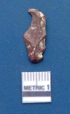 | Description / विवरण | It is a blade fragment with two sharp parallel sides and lateral margin with the working edges. The bulb of percussion is present ventral side with ripple on it due to flaking. It has flake scars on the surface. |