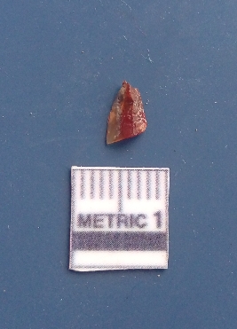 | Description / विवरण | It is a blade fragment with two sharp parallel sides and lateral margin with the working edges. The bulb of percussion is present ventral side with ripple on it due to flaking. It has flake scars on the surface. Red in color. |