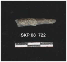 | Description / विवरण | Broken bone object, it is brownish in color. It is pointed at one end and is circular in cross section. It could be a bone point. |