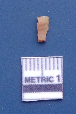 | Description / विवरण | It is a blade fragment with two sharp parallel sides and lateral margin with the working edges. The bulb of percussion is present ventral side with ripple on it due to flaking. It has flake scars on the surface. |