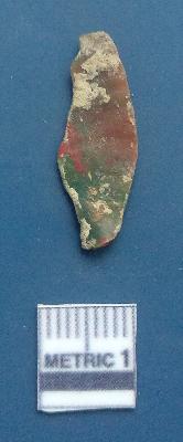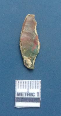 | Description / विवरण | It is a blade fragment with two sharp parallel sides and lateral margin with the working edges. The bulb of percussion is present ventral side with ripple on it due to flaking. It has flake scars on the surface. |