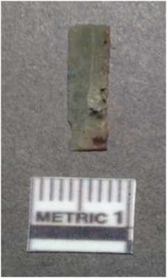 | Description / विवरण | It is a chert blade, both the sides are sharp and retouched. The ridges can be seen clearly on the dorsal surface. Ventral surface is plain and it is triangle in cross section. |