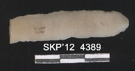 | Description / विवरण | Broken chert blade. It is long, rectangular in structure. The ridges can be seen clearly and the sides are rectangular. The ventral surface is plain. It is trapezium in cross section. |