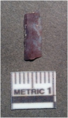 | Description / विवरण | It is a chert blade, both the sides are sharp and retouched. The ridges can be seen clearly on the dorsal surface. Ventral surface is plain and it is triangle in cross section. |