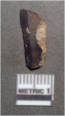 | Description / विवरण | It is a chert blade, both the sides are sharp and retouched. The ridges can be seen clearly on the dorsal surface. Ventral surface is plain and it is triangular in cross section. |