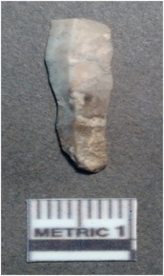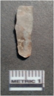 | Description / विवरण | It is a chert blade, both the sides are sharp and retouched. The ridges can be seen clearly on the dorsal surface. Ventral surface is plain and it is triangular in cross section. |