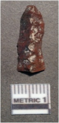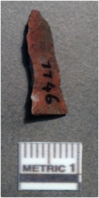 | Description / विवरण | It is a chert blade, both the sides are sharp and retouched. The ridges can be seen clearly on the dorsal surface. Ventral surface is plain and it is triangular in cross section. The striking platfrom can be seen on the proximal end. |