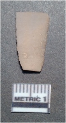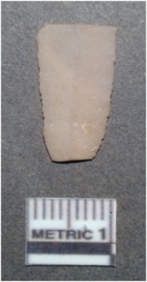 | Description / विवरण | It is a chert blade, both the sides are sharp and retouched. The ridges can be seen clearly on the dorsal surface. Ventral surface is plain and it is triangular in cross section. |