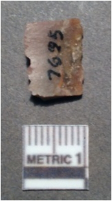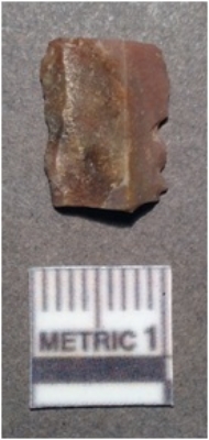 | Description / विवरण | It is a chert blade, both the sides are sharp and retouched. The ridges can be seen clearly on the dorsal surface. Ventral surface is plain and it is trapezoidal in cross section. |