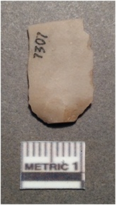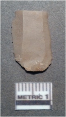 | Description / विवरण | It is a chert blade, both the sides are sharp and retouched. The ridges can be seen clearly on the dorsal surface. Ventral surface is plain and it is trapezoidal in cross section. The striking platform can be clearly seen and bulb of percussion on the vendral surface. |