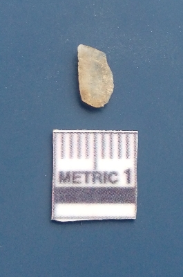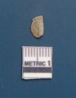 | Description / विवरण | The chalcedony flake has a prominent bulb of percussion and sharp flaked ends. The flake has re touched sides and flake scars are visible on the surface. The piece has a bulb on the ventral side. |