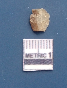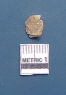 | Description / विवरण | The chalcedony flake has a prominent bulb of percussion and sharp flaked ends. The flake has re touched sides and flake scars are visible on the surface. The piece has a bulb on the ventral side. |