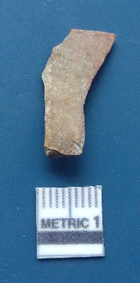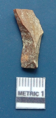 | Description / विवरण | It is a blade fragment with two sharp parallel sides and lateral margin with the working edges. The bulb of percussion is present ventral side with ripple on it due to flaking. It has flake scars on the surface. |