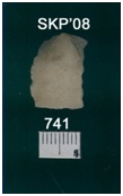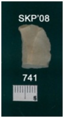 | Description / विवरण | This is a small chert blade with broken ends and dented sides. Flaked ridges on the dorsal side. Banded and tapered to one end. No bulb of percussion. |
