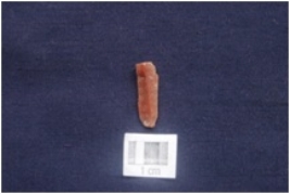 | Description / विवरण | A chert blade blank with triangular section, the edges are with use mark |
