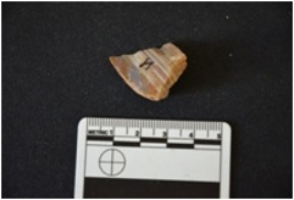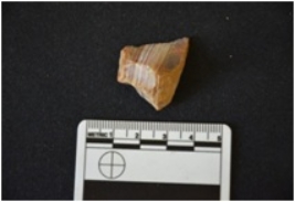 | Description / विवरण | Agate utilized flake has flake scars on dorsal side, striking platform, chipped off bulb on ventral side and use wear on working edge. |