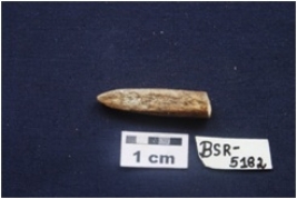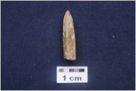 | Description / विवरण | Broken with oval cross-section, and with scoop marks , circular mark and prominent tip. Surface is smooth. |