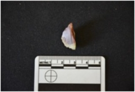 | Description / विवरण | Chalcedony point has striking platform, midridge on dorsal side, retouches along at pointed distal end and raw-material given heat treatment. |