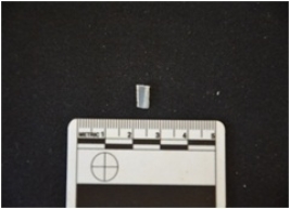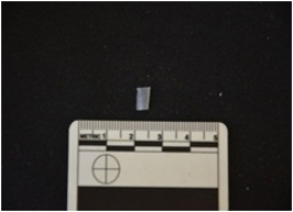 | Description / विवरण | Fragment of a blade made on chalcedony, broken at the distal end, bulb of percussion visible |