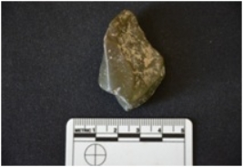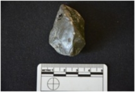 | Description / विवरण | Chert scarper has flake scars on dorsal side, striking platform, negative bulb on ventral side and retouches on working edge. |