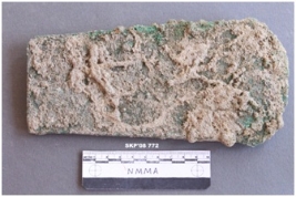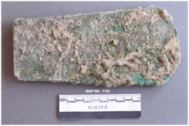 | Description / विवरण | Copper celt axe, it is corroded and green in color. It is rectangular in structure. |