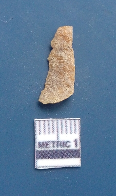 | Description / विवरण | It is a blade fragment with two sharp parallel sides and lateral margin with the working edges. The bulb of percussion is present ventral side with ripple on it due to flaking. It has flake scars on the surface. |