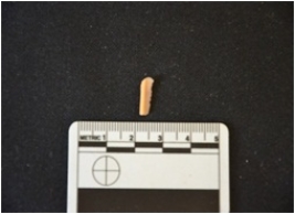 | Description / विवरण | Backed blade made on chalcedony, use wear marks visible on the cutting edge, broken at the proximal end |