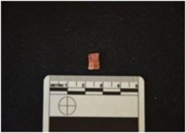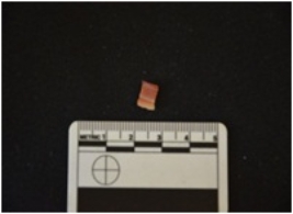 | Description / विवरण | Fragment of a parallel sided blade made on chert, use wear marks visible on both edges, broken at both ends, mid-ridge seen on the dorsal side. |