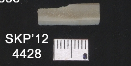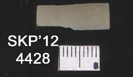 | Description / विवरण | This is a chert blade, triangular cross section at both broken ends. One lateral margin side has one deeper retouched side margin. Flaked ridges, no bulb of percussion visible. |
