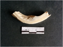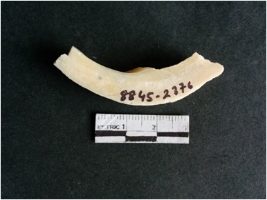 | Description / विवरण | This is a fragment of an unfinished shell circlet. It is an unfinished bangle fragment. It is white in color with polished inner surface and grounded outer surface. Rectangular in cross section. |