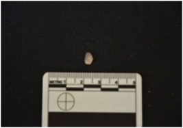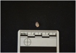 | Description / विवरण | Flake struck on chalceony, use wear marks along one cutting edge, bulb of percussion visible |
