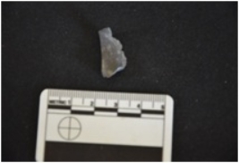 | Description / विवरण | Chert utilized flake has striking platform, bulb on ventral side and use wear marks on working edge. |