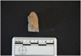 | Description / विवरण | Lithic debitage, by product of tool manufacturing, cortex present |