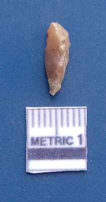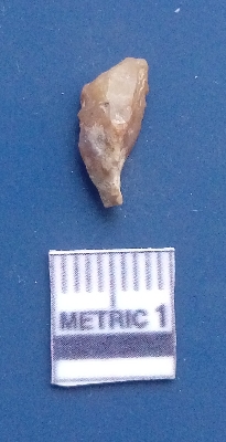 | Description / विवरण | It is a blade fragment with two sharp parallel sides and lateral margin with the working edges. The bulb of percussion is present ventral side with ripple on it due to flaking. It has flake scars on the surface. |