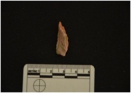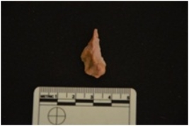 | Description / विवरण | Flake struck of chert, use wear marks seen, cortex present on dorsal side, |